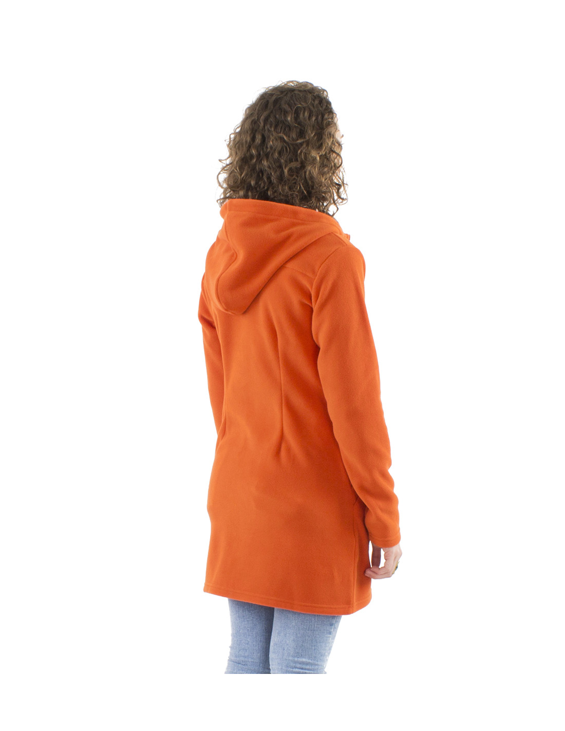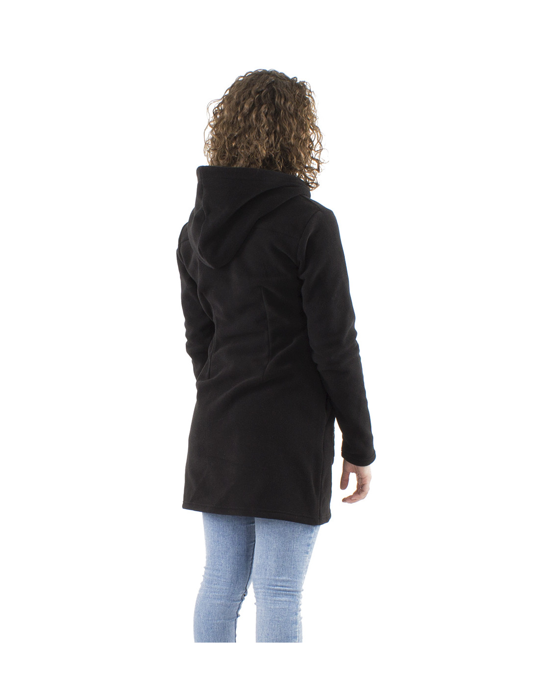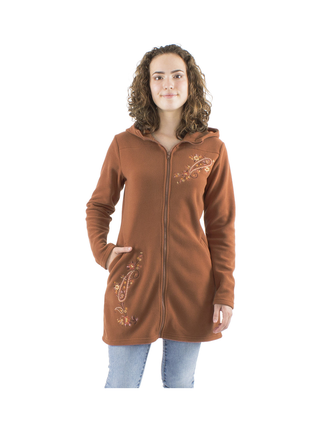 Veste longue maille polyester polaire avec capuche broderie fleurs