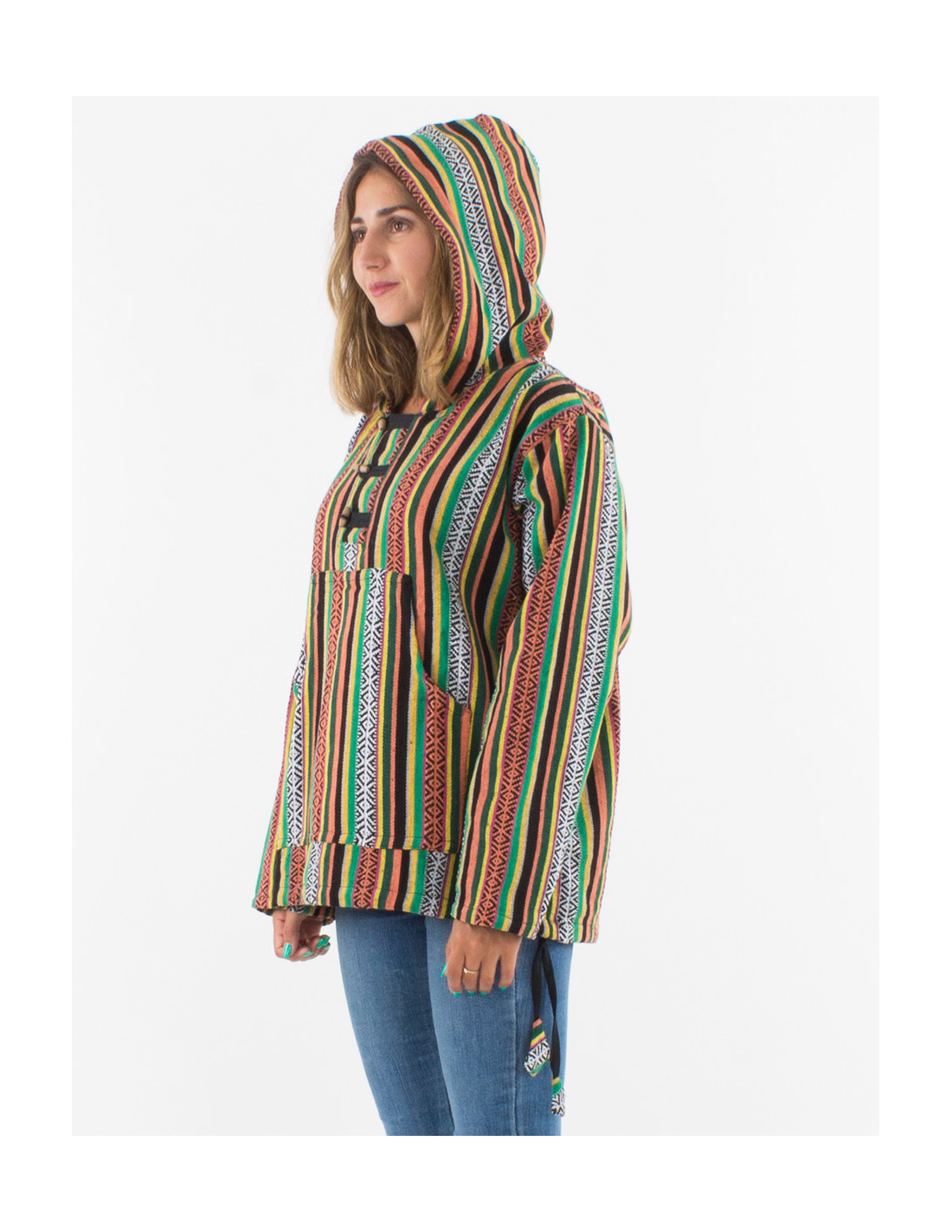 Veste 3 boutons coton capuche rayée Gheri