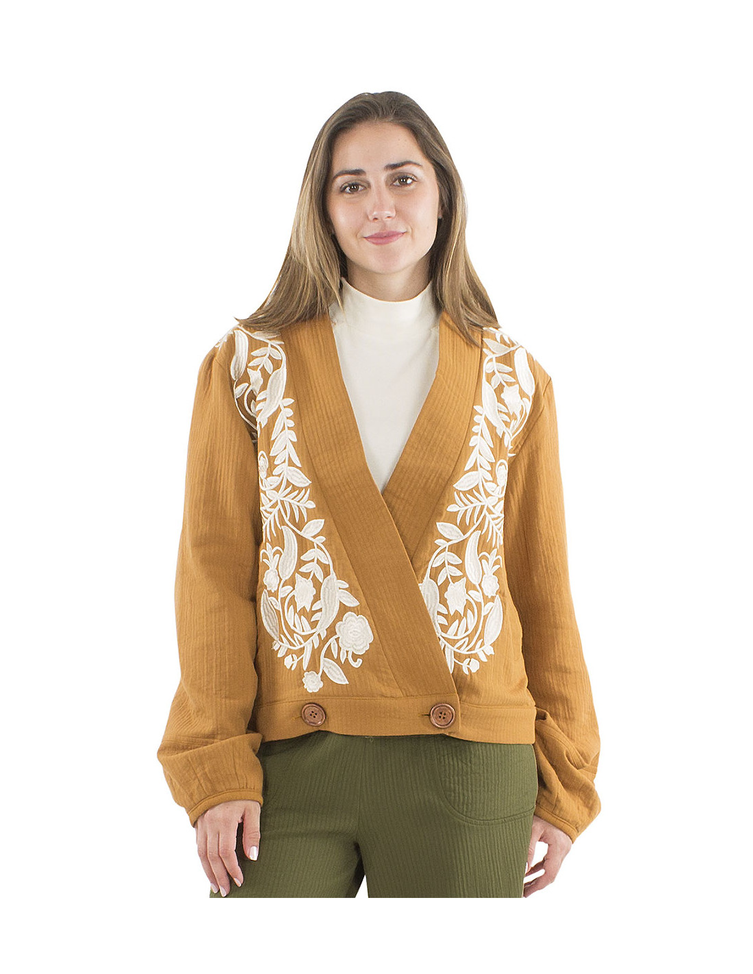 Vestes Veste coton unie brodée main grosses fleurs VE17837 Longueurs : S : 53 cm, M : 55 cm, L : 57 cm, XL : 59 cm View